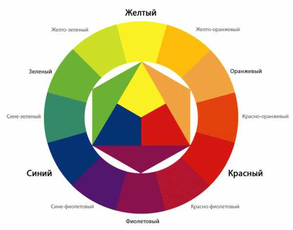 ПЕРВИЧНЫЕ ЦВЕТА . Красный, синий и желтый — основа для прочих цветов. Каждый из семи миллионов оттенков, которые мы различаем, можно составить из этих основных «строительных блоков» . Сами же основные цвета нельзя получить при смешении других красок. Если красный, синий и желтый смешать в равных долях, то получится черный. ВТОРИЧНЫЕ ЦВЕТА Получаются при смешении двух основных цветов. К ним относятся: фиолетовый (комбинация красного и синего) , оранжевый (смешение красного и желтого) и зеленый (желтый плюс синий) . ТРЕТИЧНЫЕ ЦВЕТА Так называют цвета, которые можно создать смешением одного основного и одного вторичного цветов. Их шесть: шафрановый (красный с оранжевым) , цитрусовый (желтый с зеленым) , сиреневый (синий с фиолетовым) , пурпурный (красный с фиолетовым) , янтарный (желтый с оранжевым) , бирюзовый (синий с зеленым) .