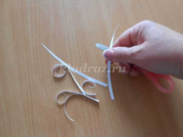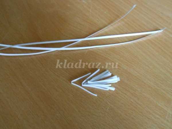 Сделайте надрезы на полосках с помощью ножниц. Длина надреза – 5 см.