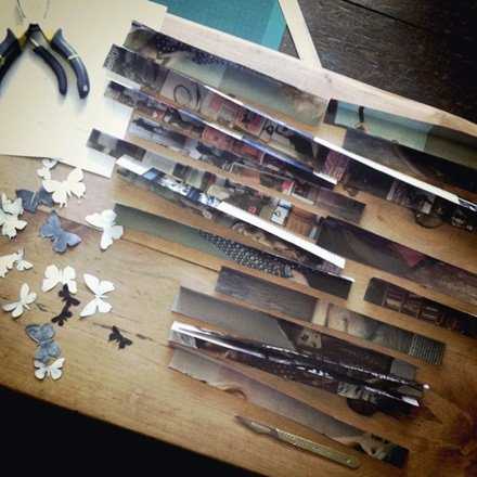 Любая бумага, будь то страница журнала, газеты, книги и т. д., разрезается на небольшие прямоугольники, которые складываются пополам. На одной стороне рисуется половинка произвольного силуэта бабочки и вырезается.