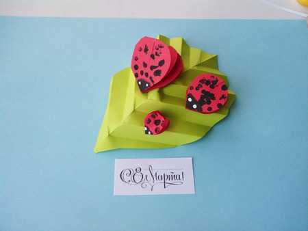 Осталось наклеить божьих коровок на лист. Аппликация готова!