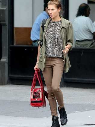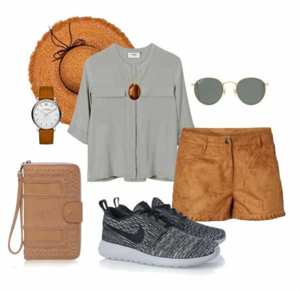 Для комплекта в спортивном стиле остановитесь на легких брюках, джинсах или шортах. Например, это могут быть темно-серые джинсы, светло-коричневая кофта, а дополнить комплект можно теплой кожаной курткой. Можно также надеть легкие шорты, серую свободную рубашку, удобную обувь и взять маленький рюкзак.