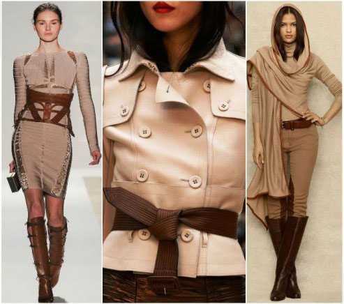 В сравнение с белым оттенком бежевый цвет более приятный и мягкий, его выбирают, если хотят подчеркнуть женственность и теплоту образа. Ведь по сути бежевый является именно тем цветом, который может гарантировать ощущение расслабленности и коричневый с бежевым идеально подходят друг другу. Дополнять данный дуэт совсем не обязательно, так как мягкое слияние цветов является вполне самодостаточным явлением. Лучше конечно обратить внимание на фактуры.