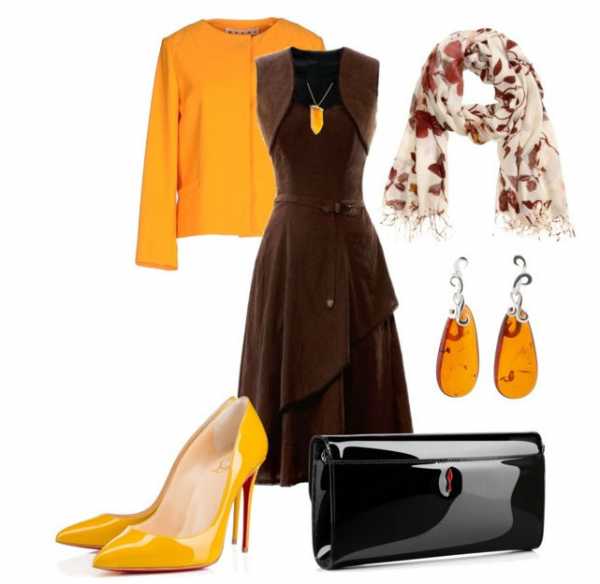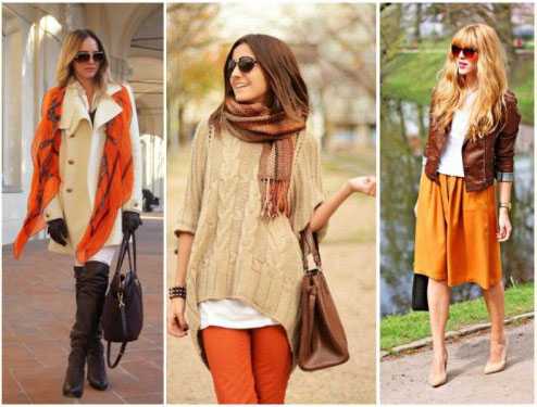 - Желто-коричневый, близкий с оранжевым, но он темнее и приглушеннее. С его помощью делают акценты в одежде. Аксессуары рыжего тона дают образу жизнерадостность и оптимистичность.