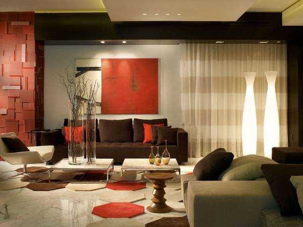 Коричневый — это сочетание синего, желтого и красного. Поэтому они всегда неплохо смотрятся в интерьере. Глубина красного цвета обогащает пространство, придавая чувство luxury. Если же вы, наоборот, хотите добавить в дизайн комнаты нотку безумства и радости, то сочетайте коричневый с оранжевыми или желтыми оттенками.