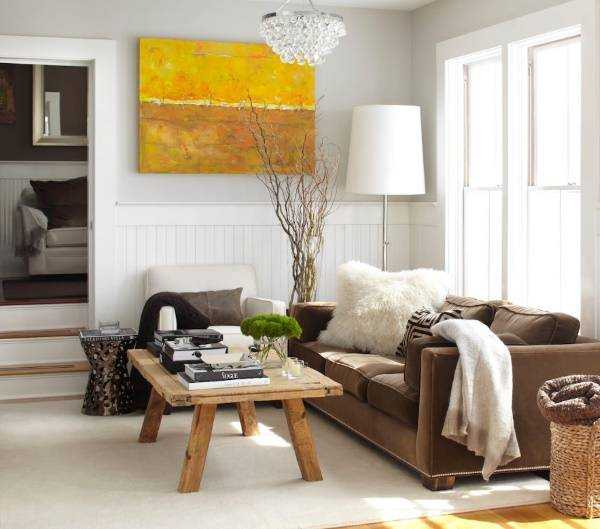 Важно отметить, что коричневый цвет всегда усиливается, когда контрастирует с белым. Это сочетание придает комнате выразительность, легкость и особую атмосферность.