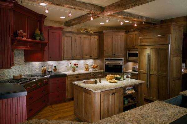 Сочетание коричневого цвета в интерьере с красным и желтым