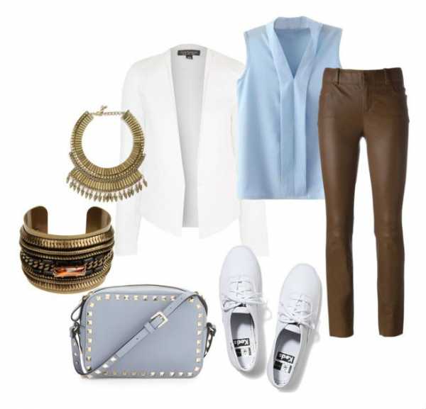 - ультрамариновые брюки, белая тенниска, и светло-шоколадный жакет.