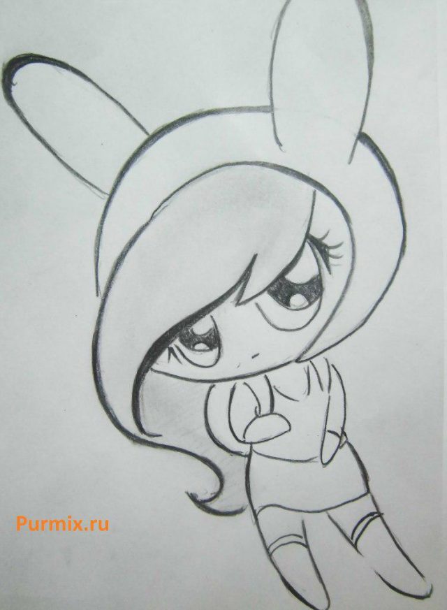 Шаг 3. Рисуем мордочку, ушки, шею, лапы и кончик хвоста
